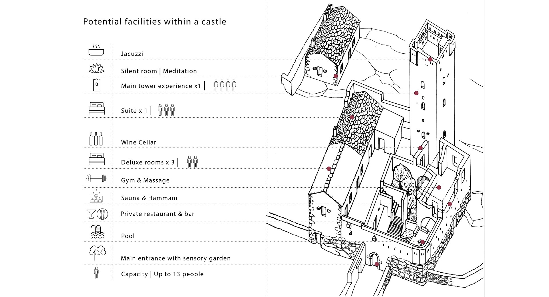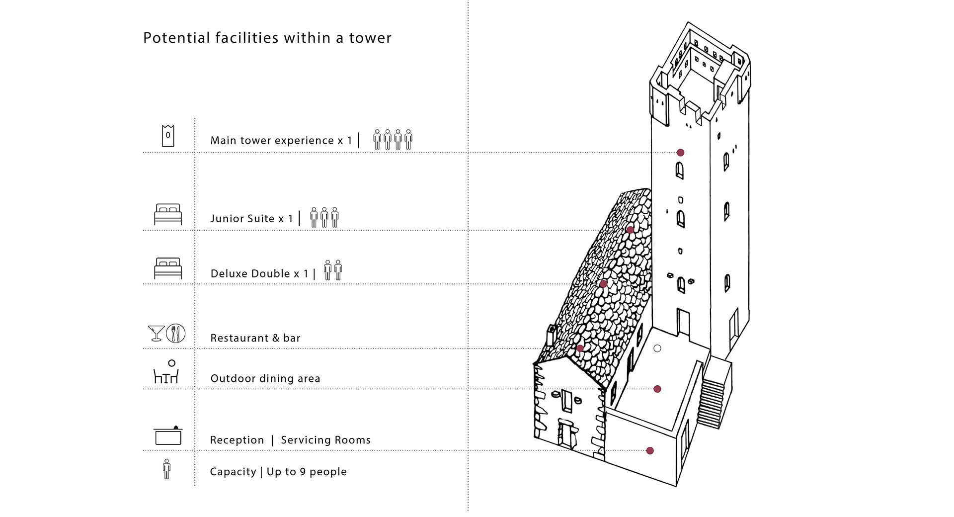 The vision is the reinterpretation and regeneration of a semi-abandoned village with the creation of a vibrant local community with a mixture of tenants including locals, tourists, remote workers as well as families that would settle in the newly reformed village.