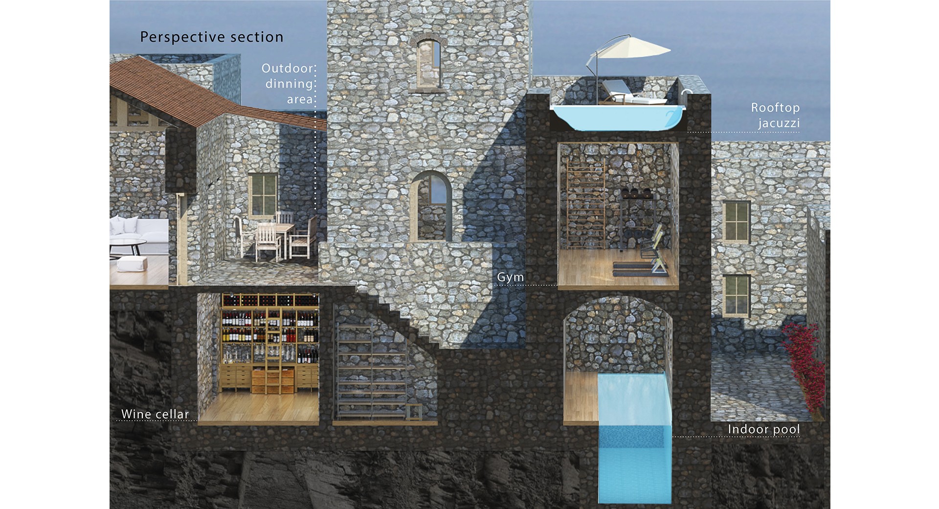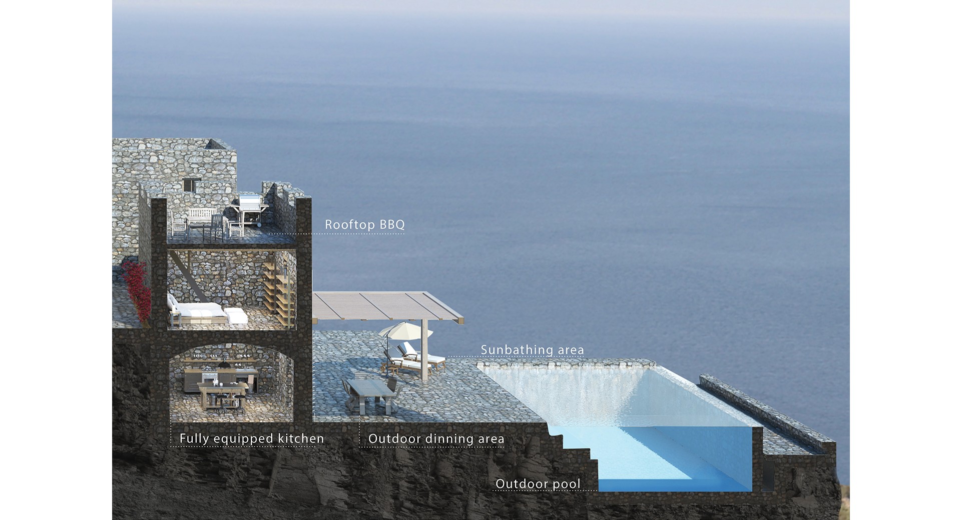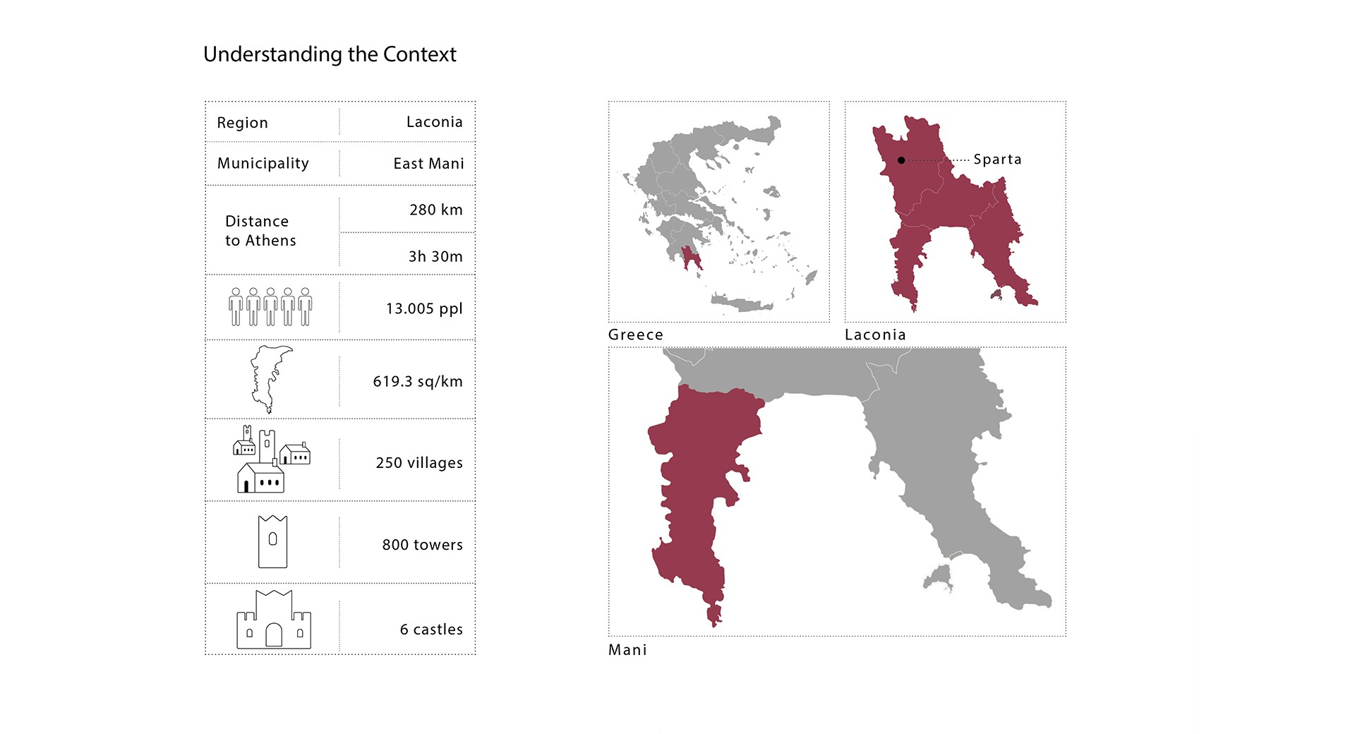 The concept starts with the need of a person to take time off in remoteness and get distanced from the fast living of the 21st century. It takes place in an authentic, secluded and semi-abandoned area in the southernmost point of the Greek mainland, Mani peninsula. Nature covers the full spectrum with imposing mountain peaks, golden beaches, jagged coastlines with translucent waters.