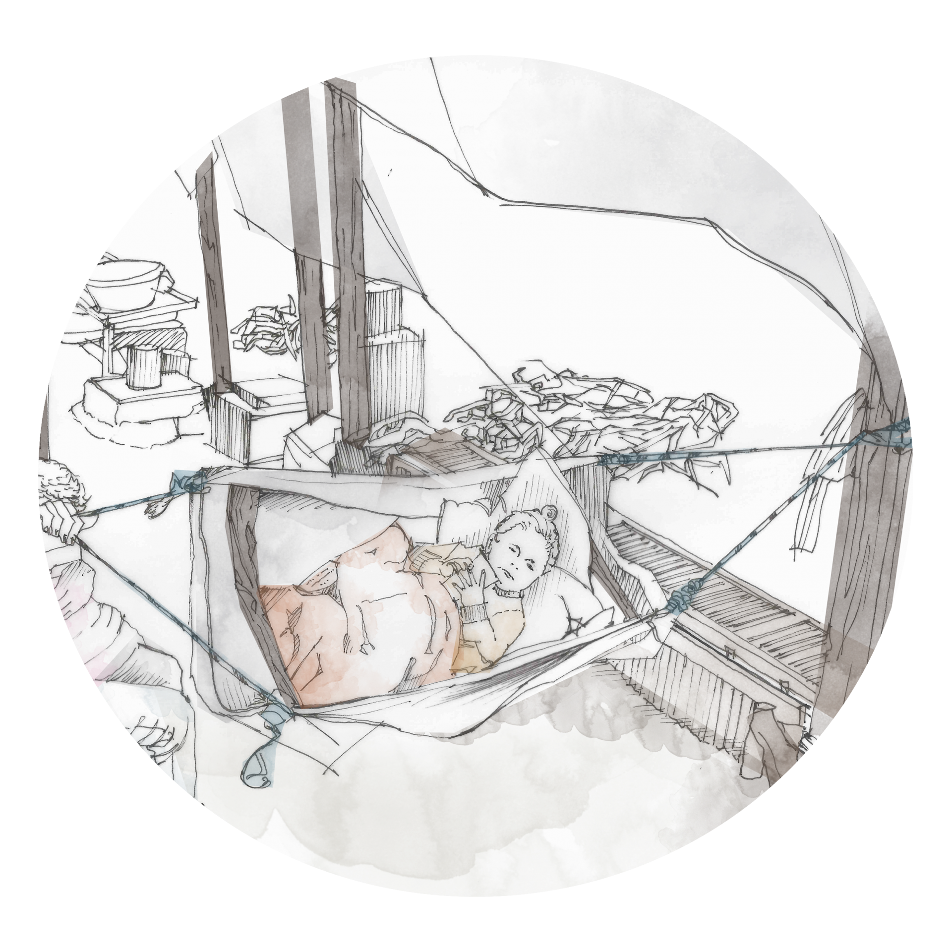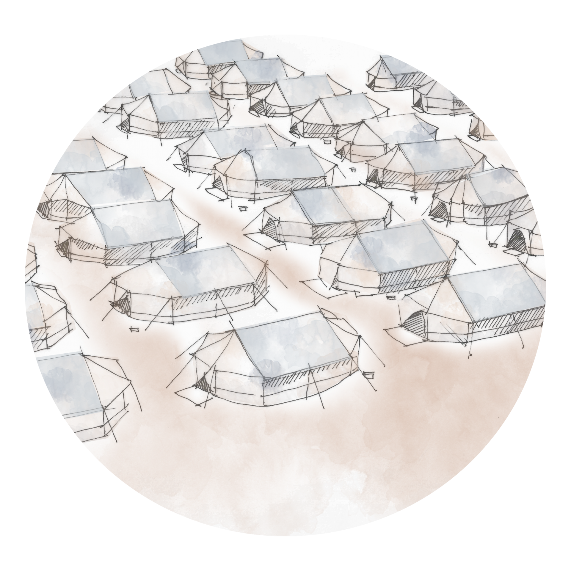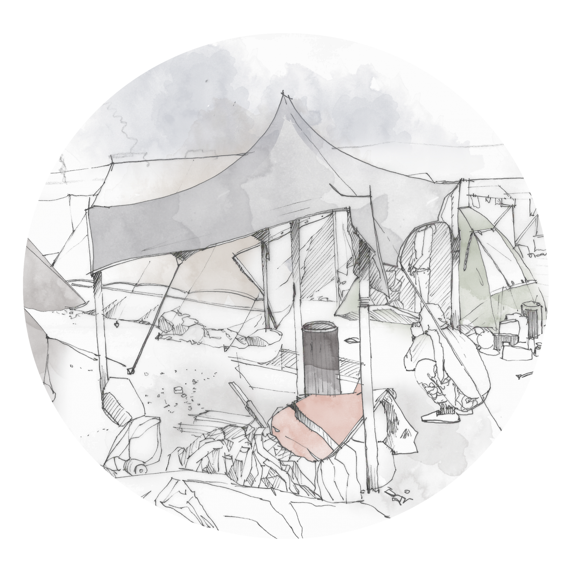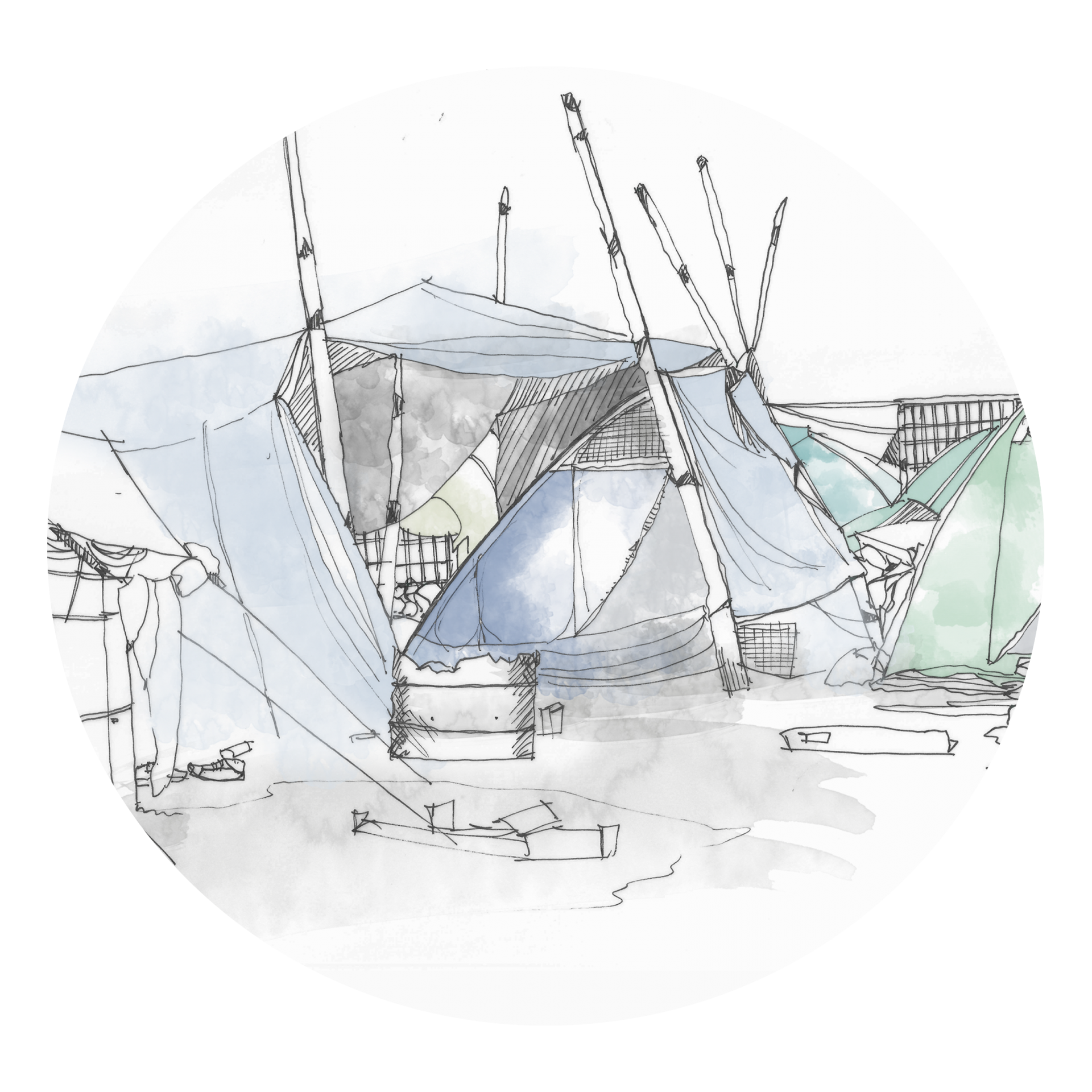 Each time we were intrigued by the ingenuity of the residents; their inventive solutions and the efficient use of whatever material they would come across have been invaluable design lessons. We noticed great attention to details and an almost entropic tendency to form “neighbourhoods” by breaking the rigid, army-like plan layout of the tents and forming groups of shelters, private and common. In the end, these per “tribe” formations would make up villages. This fast track research led to the realization that even in limbo, human inventiveness creates beauty that goes beyond the need for survival. It brought us big insights into how people cope and create shelters in extreme situations.