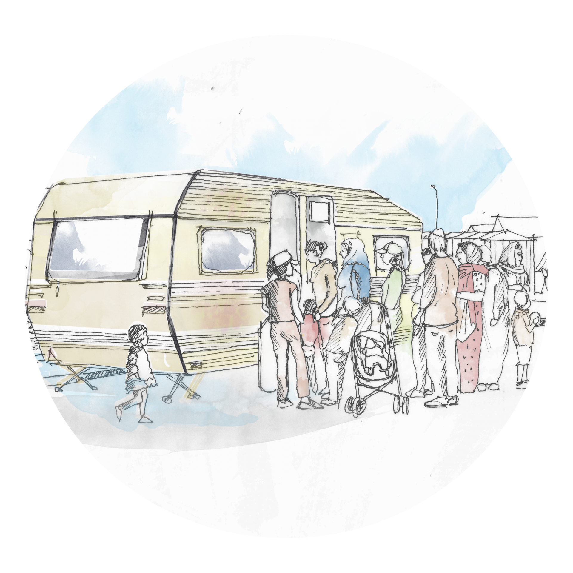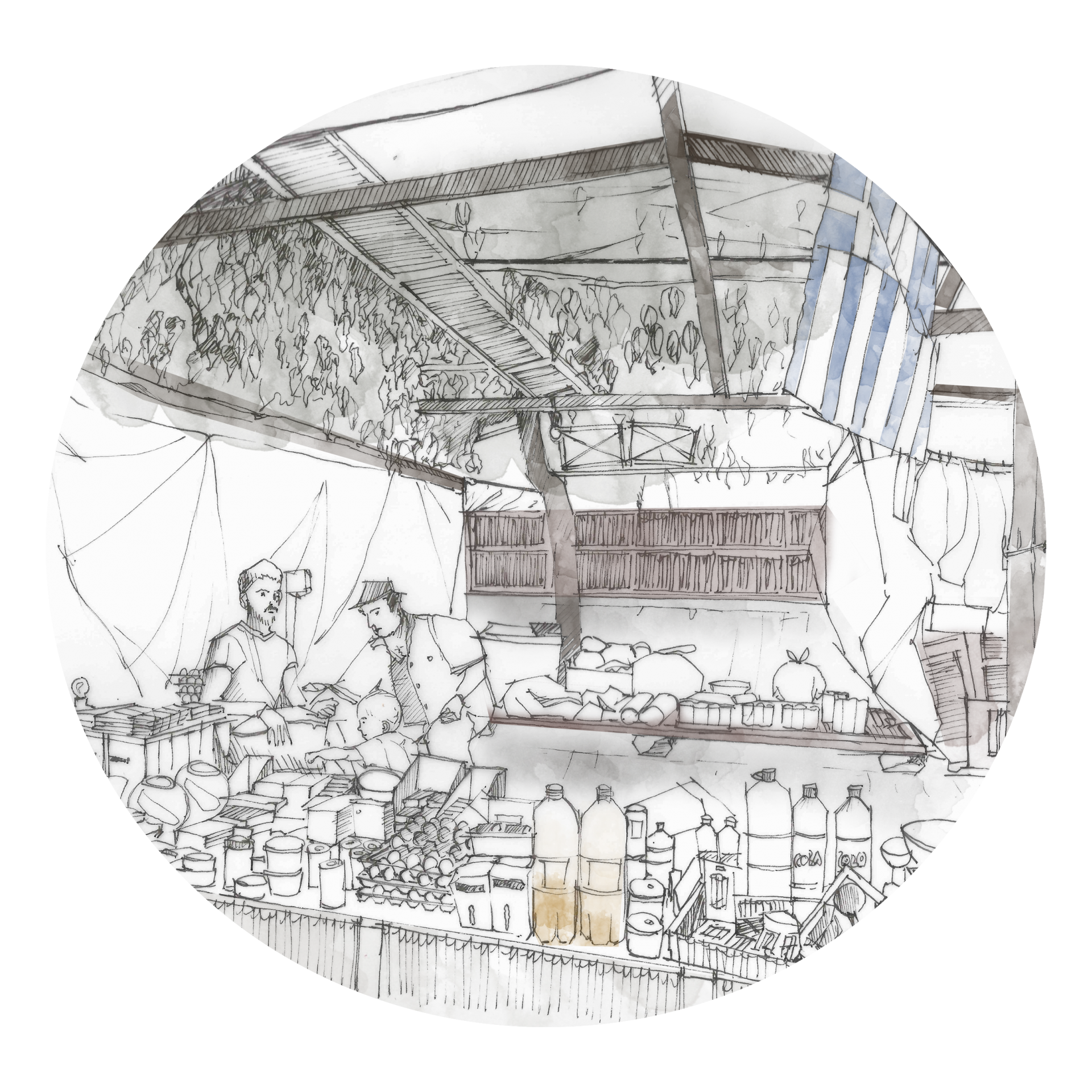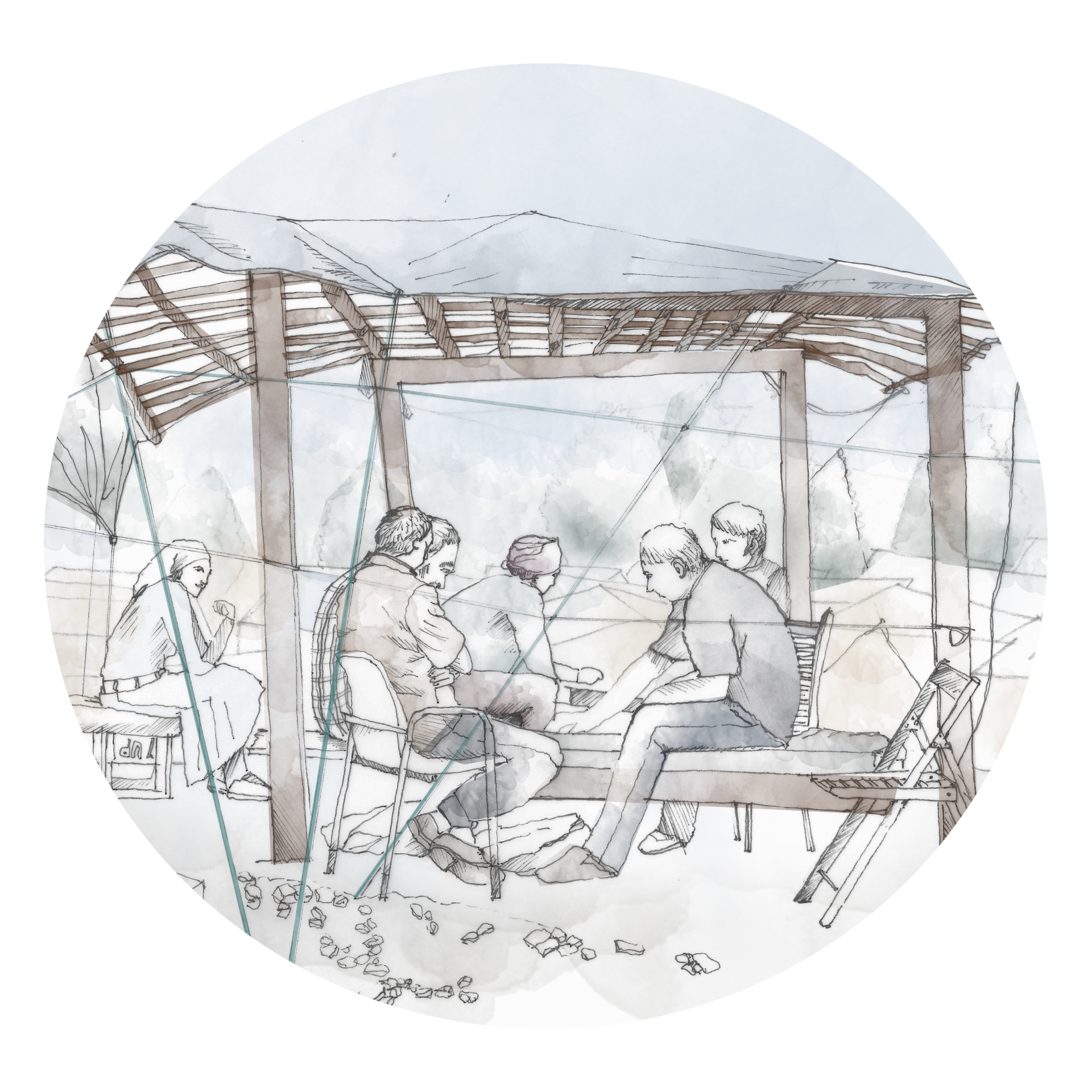 Olon Architects were assigned by “This American Life” to survey seven refugee camps in Greece. The analysis and visual representation aiming at recording living conditions and collecting stats were followed by film documentation and a series of interviews by Ira Glass and his crew. Our process involved starting by surveying the site, then pinpointing the location of each tent on the site and in the end locating common spaces. We looked at how they designed, organized and made these spaces dedicated to activities such as cooking, bathing, resting and socializing. Also, we investigated how they hacked resources to make the most out of 20m2 tents.